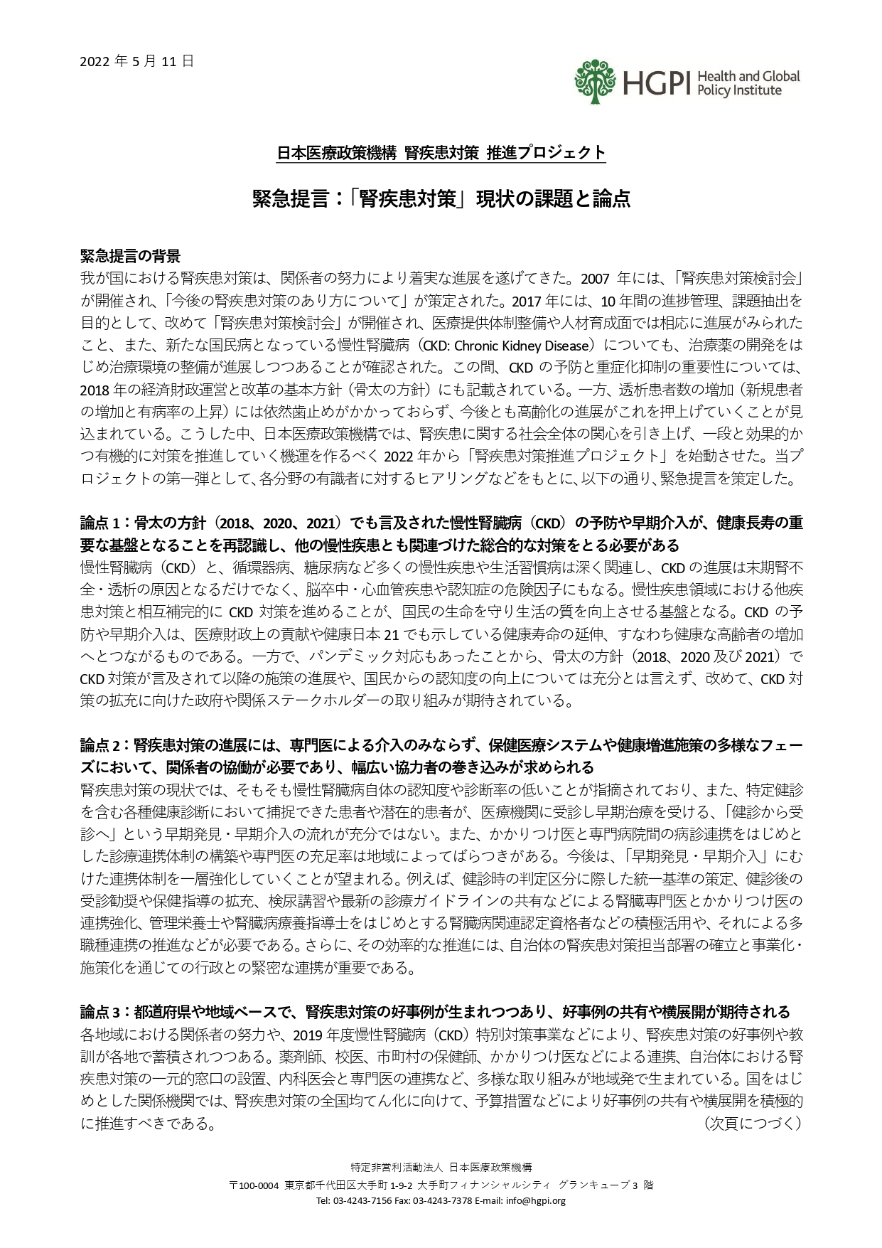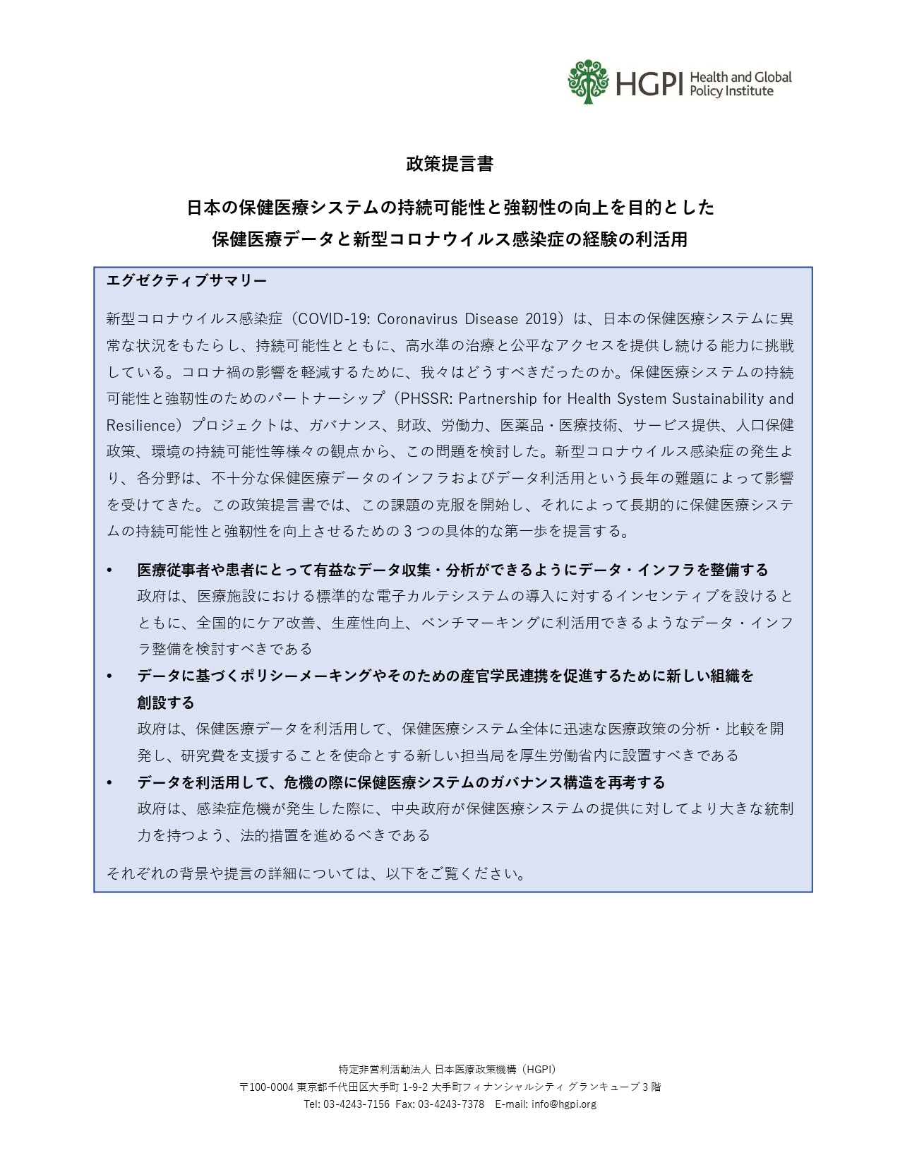 日本医療政策機構(HGPI: Health and Global Policy Institute)は、2004年に設立された非営利、独立、超党派の民間の医療政策シンクタンクです。