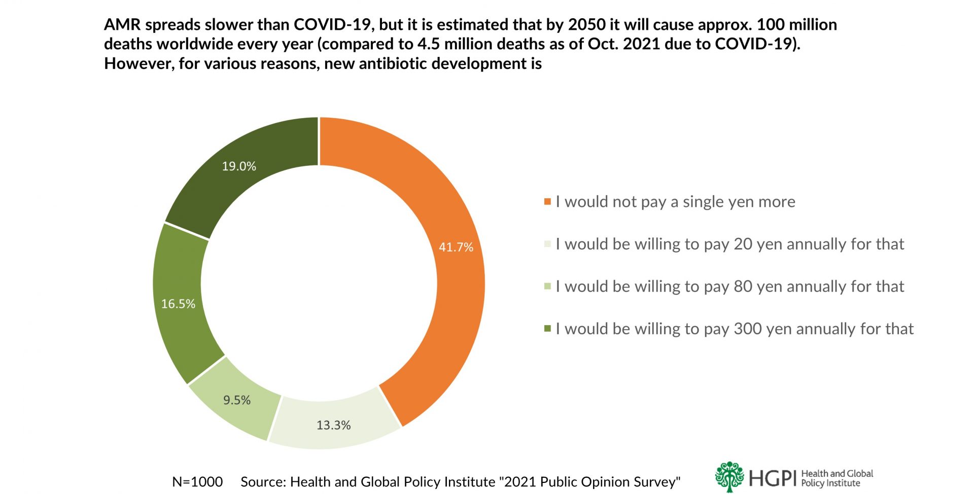 On November 26, 2021, Health and Global Policy Institute (HGPI: Secretariat of AMR Alliance Japan) released poll data on the threat of antimicrobial resistance (AMR), the natural process by which the microbes that cause infectious diseases grow resistant to treatment over time.